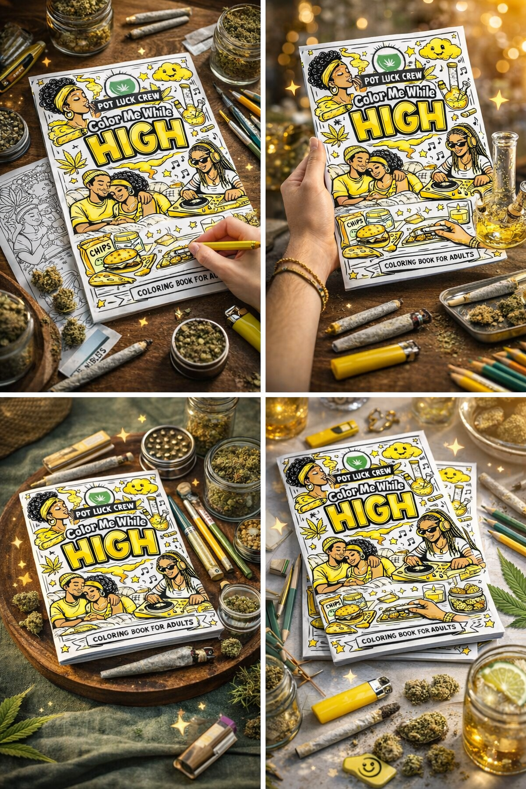 Created for adults who enjoy relaxing with good music, good company, and elevated moments, this coloring book blends playful illustrations with cannabis-friendly culture to help you unwind, de-stress, and reconnect with your creativity.